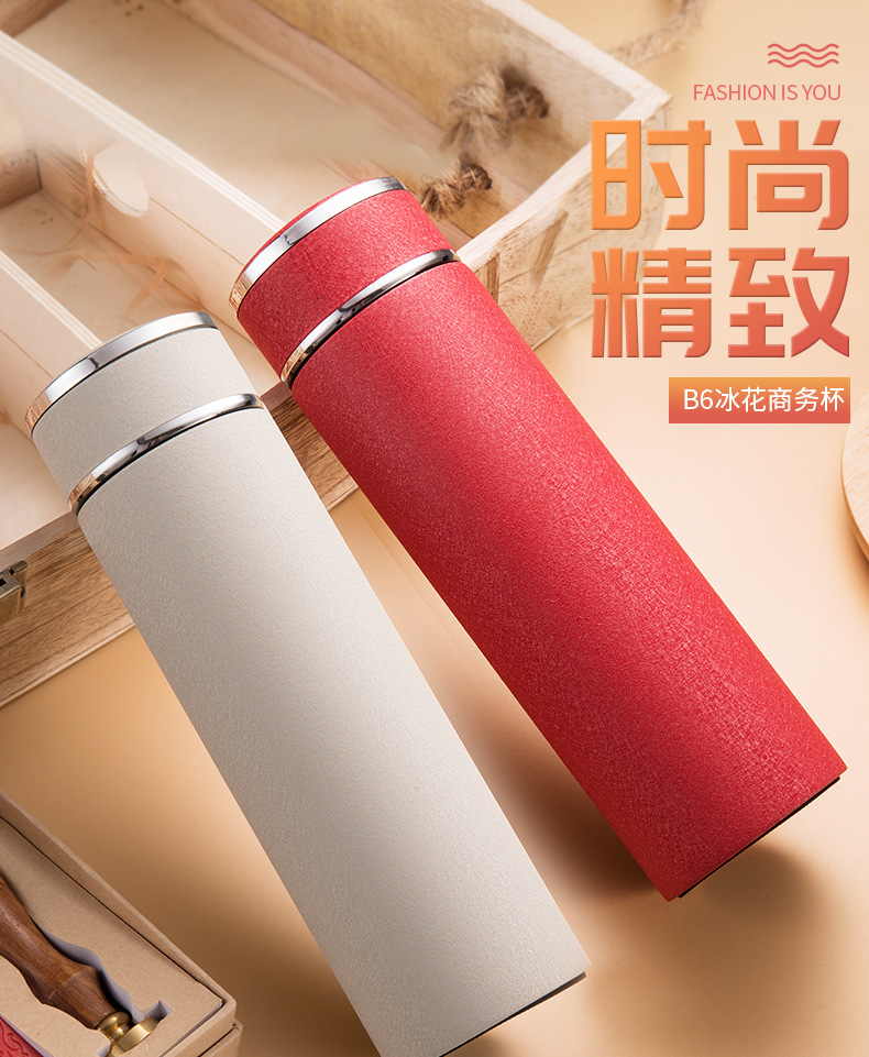 不銹鋼保溫杯冰花烤漆水杯廣告禮品定制杯子帶濾網(wǎng)印字
