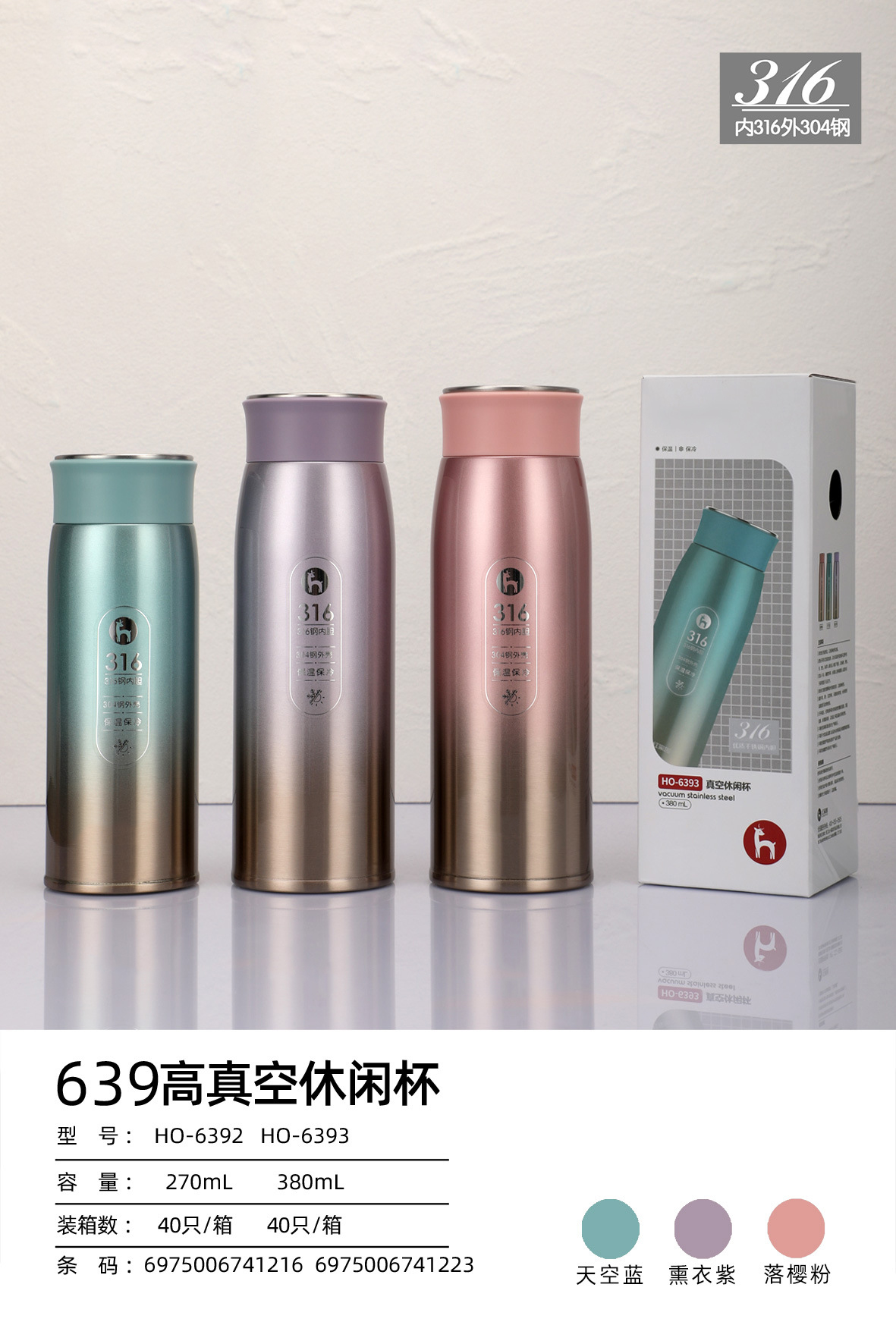 高真空休閑保溫杯316不銹鋼水杯輕便禮品杯子可印LOGO