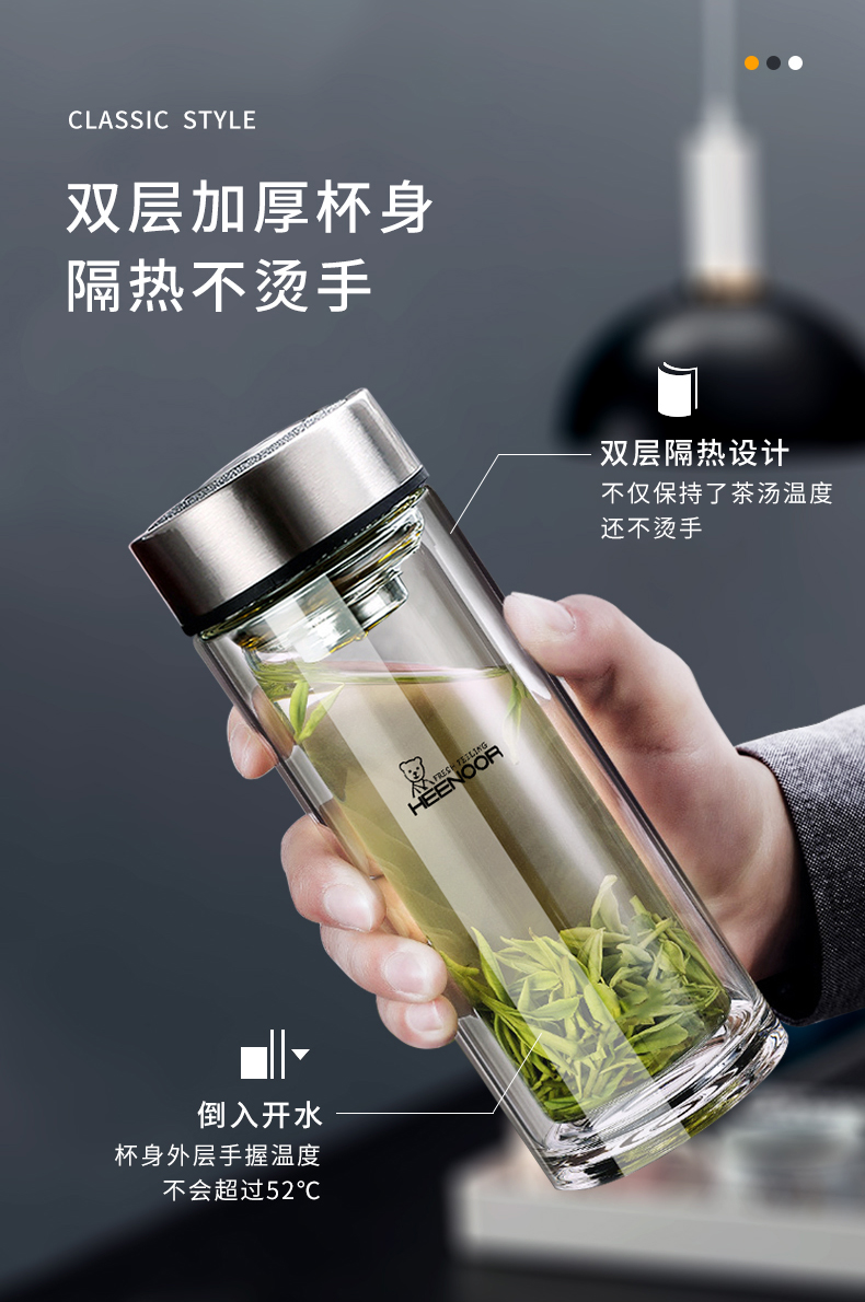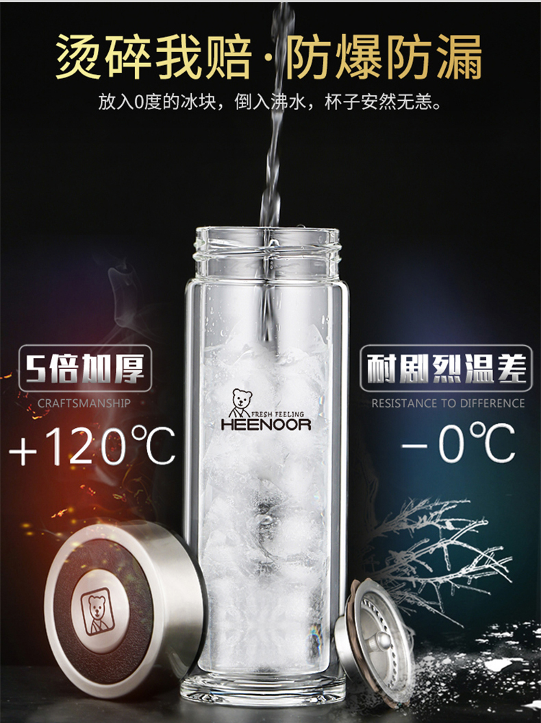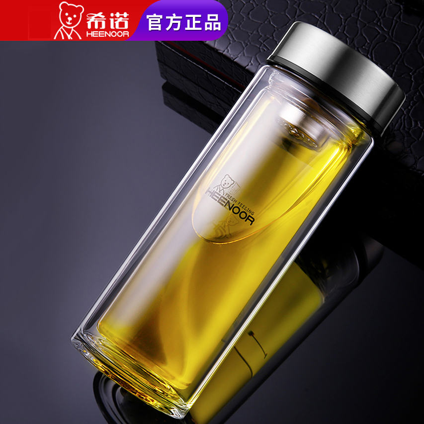 希諾雙層玻璃杯男女士家用高檔抗菌泡茶車載水杯隔熱茶杯透明杯子